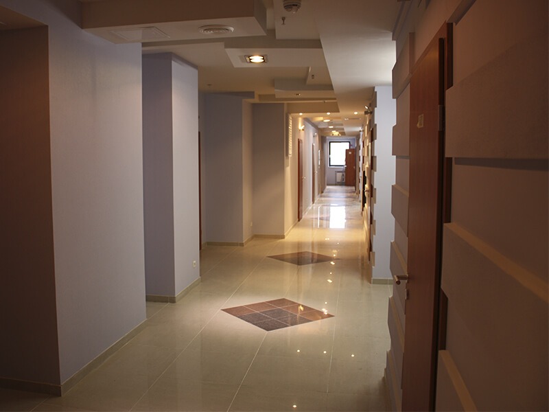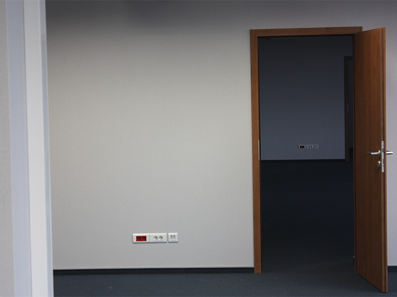 В коридоре и офисах бизнес-центра использованы, в качестве отделочного материала для стен, антивандальные обои: