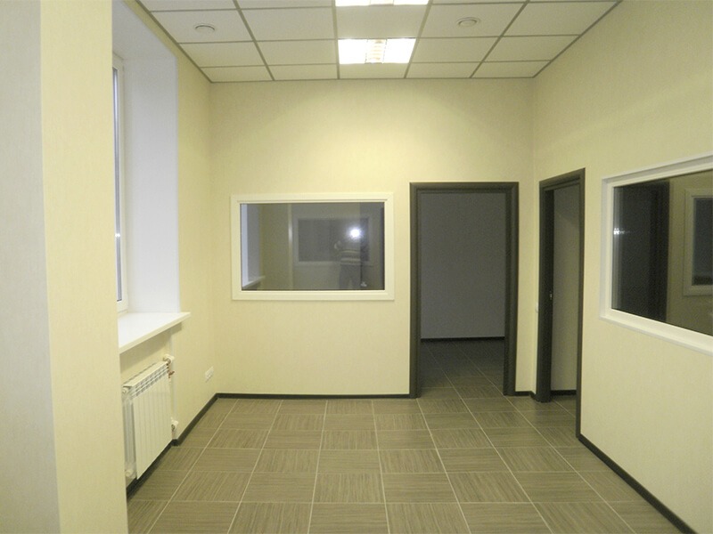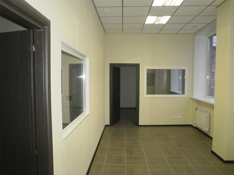 Для отделки стен в офисе компании использовались антивандальные обои с имитацией штукатурки: