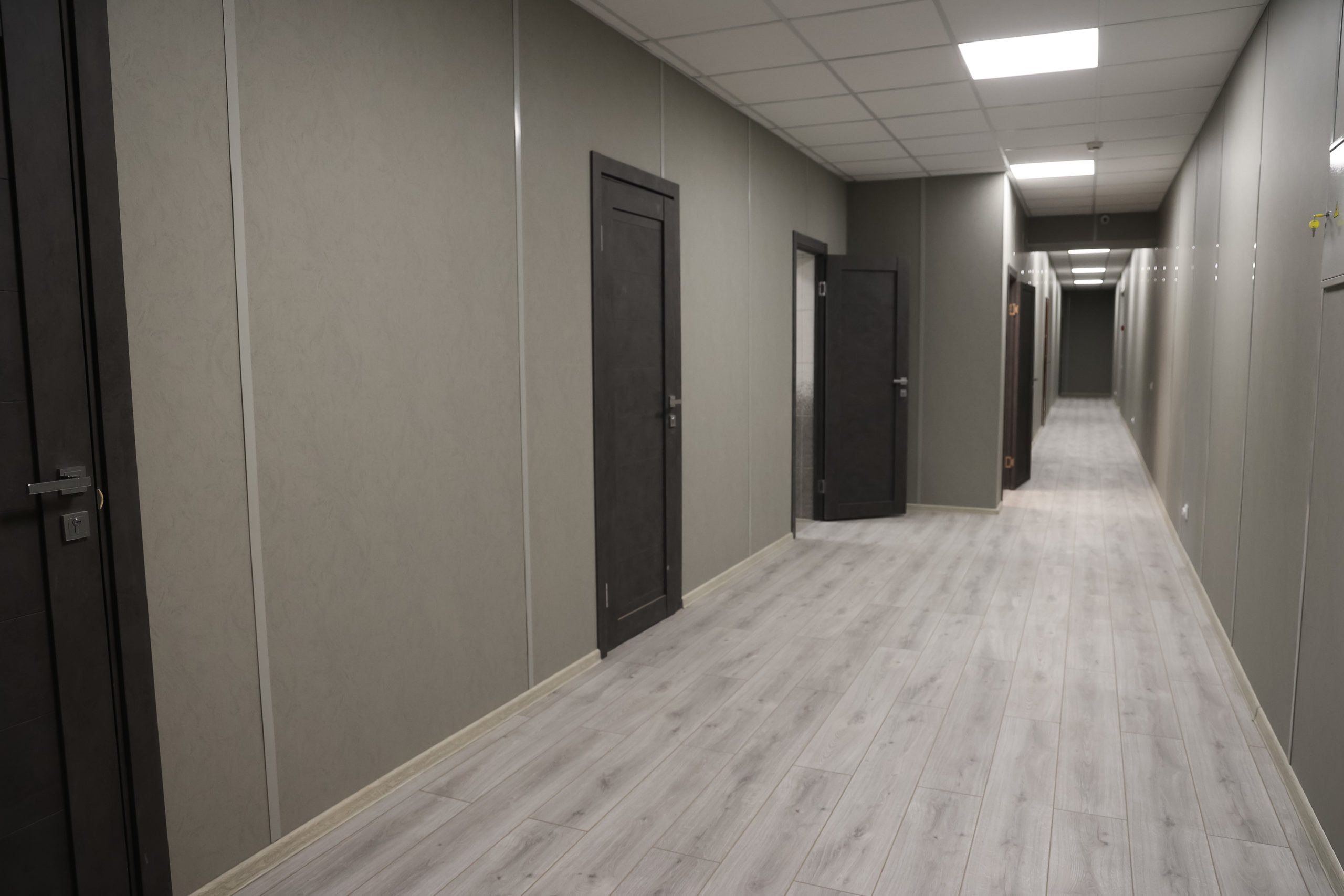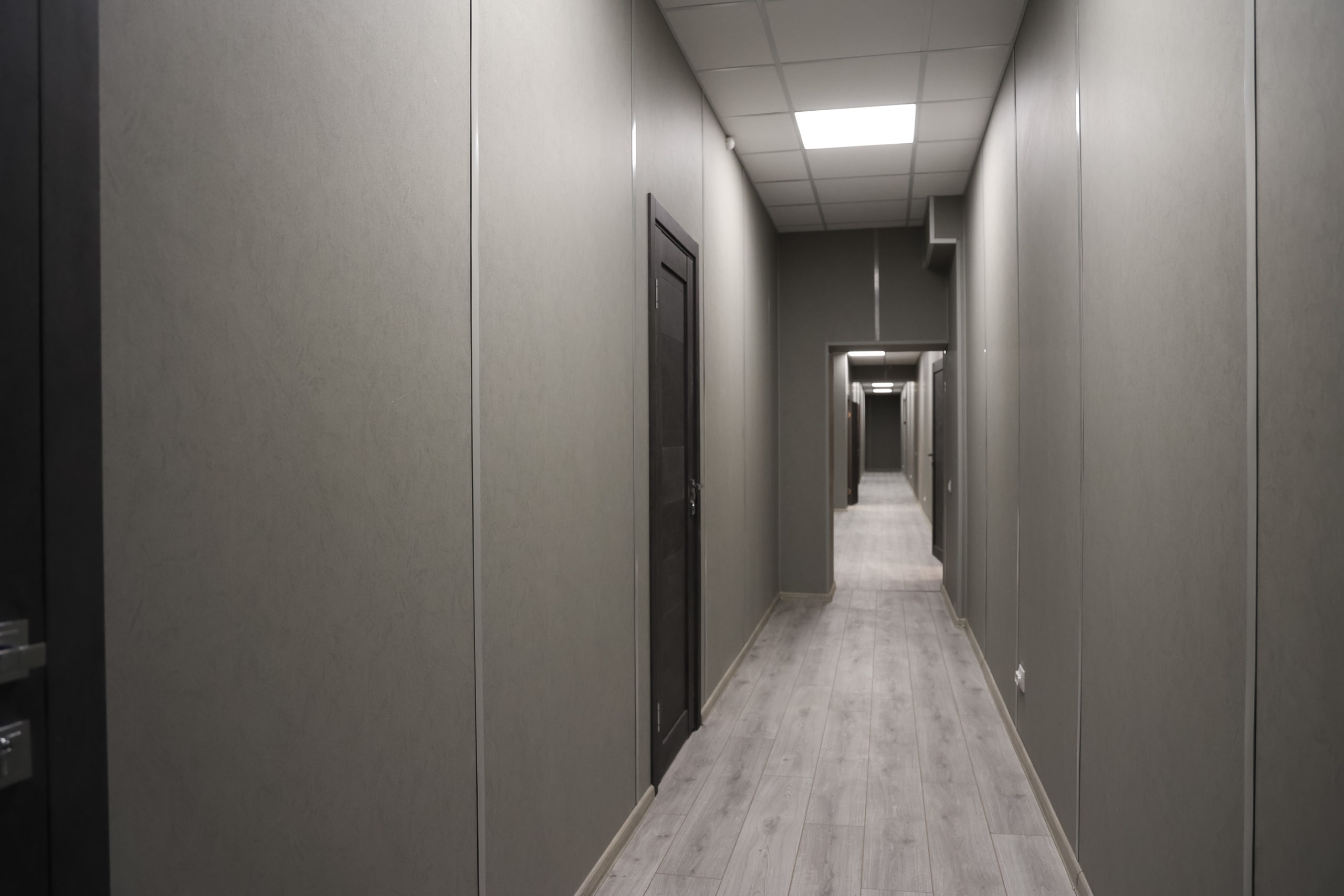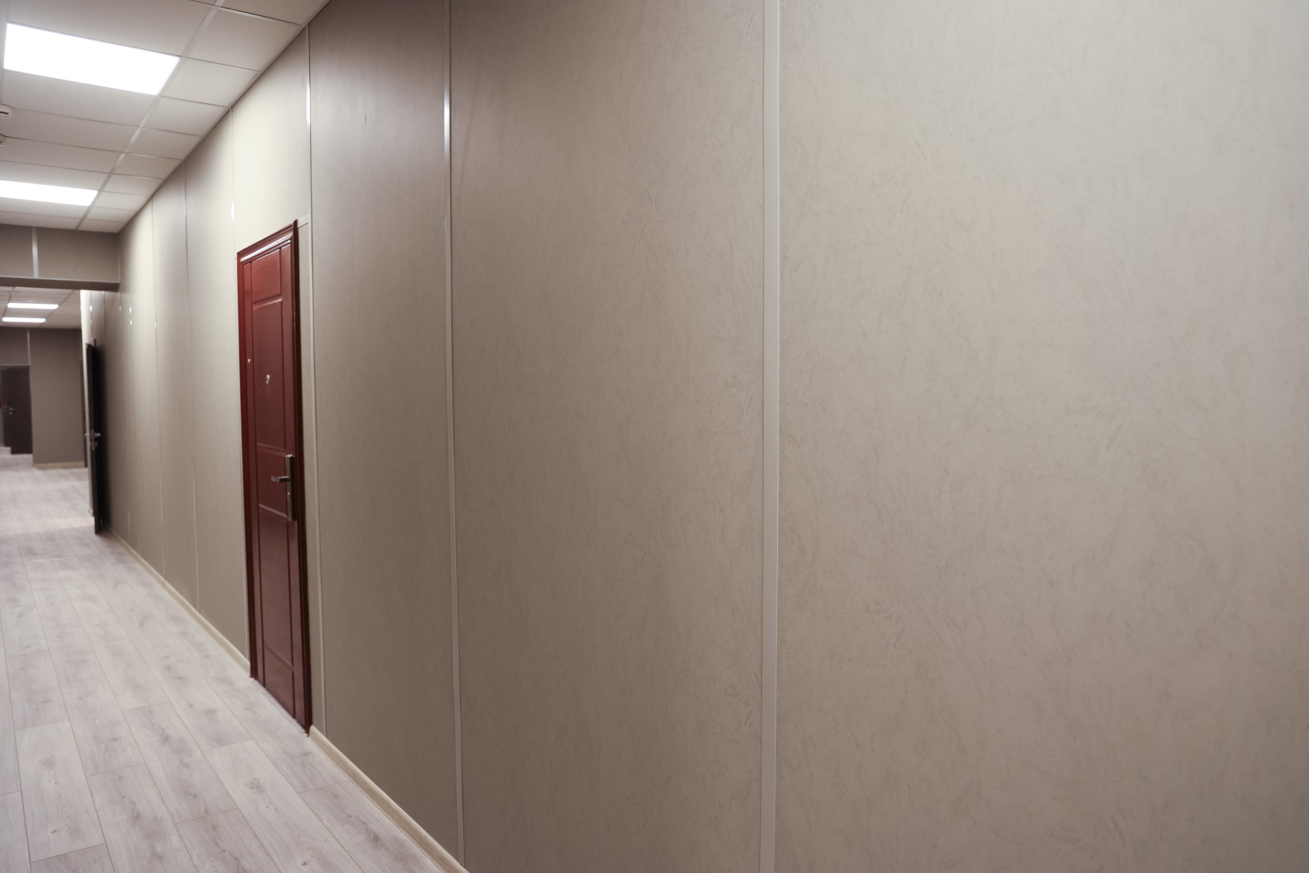 Панели ВИПРОК-Винил нашли своё применение в отделке помещений офисного центра в Санкт-Петербурге, привнося современный и сдержанный стиль в интерьеры. Для создания спокойной и продуктивной атмосферы были выбраны приглушенные серые оттенки, которые не только приятны глазу, но и универсальны, позволяя гармонично сочетать панели с любым интерьерным решением. Эти панели отличаются высокой износостойкостью, что делает их идеальным выбором для офисных пространств с высокой проходимостью, обеспечивая долговечность и легкость в уходе.