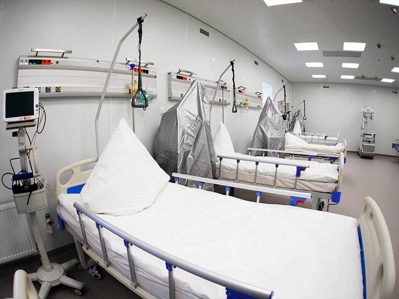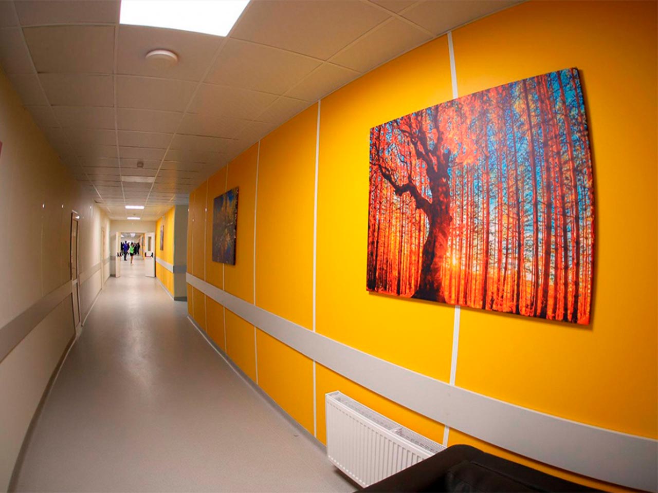 Панели Випрок использованы в качестве внутренней отделки стен реанимационных, приемных, медблока, палат и коридоров госпиталя: