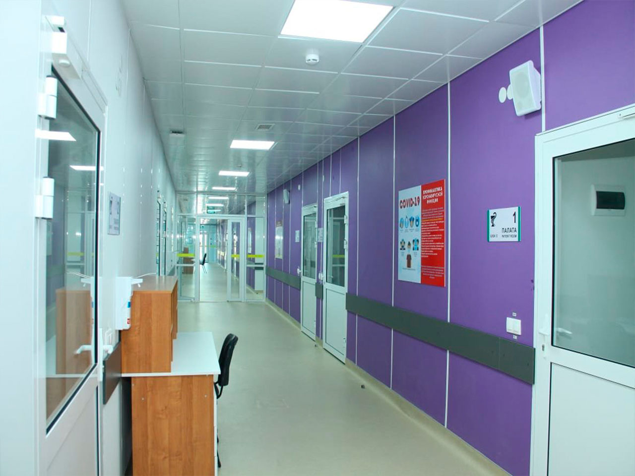 Внутрення отделка медучреждения: палат, коридоров, медблока, приемных, реанимационных, выполнена панелями Випрок: