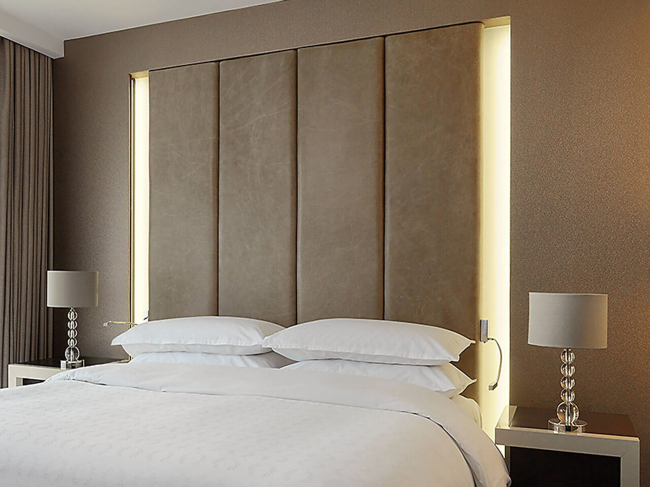 Внутренняя отделка гостиничных номеров выполнена безопасными, экологичными материалами — антивандальными обоями, имитирующими текстиль:
